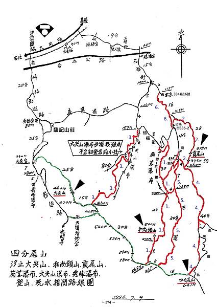 (一) 聯合艦隊於112年七月,開始整闢汐止四分尾山區域山徑,包括:(紅色路線)